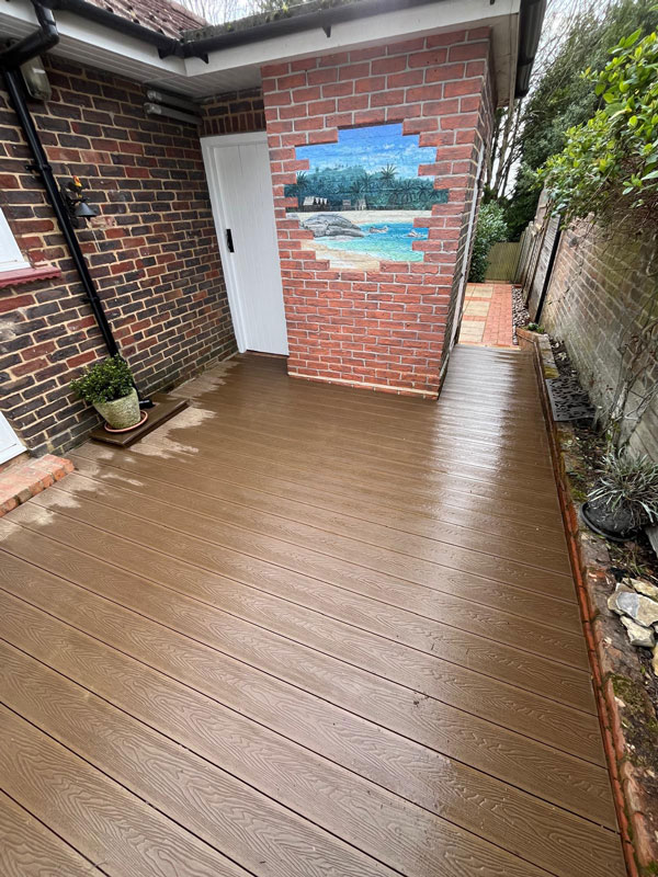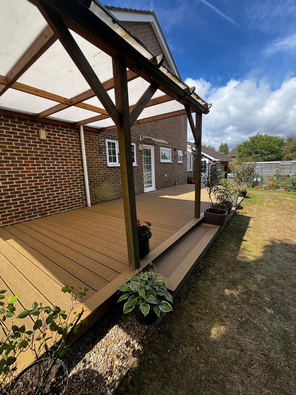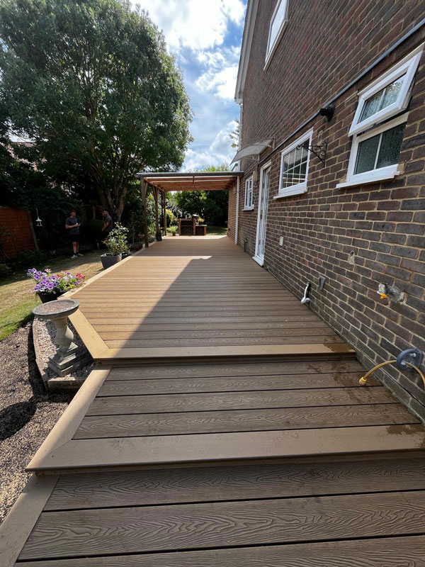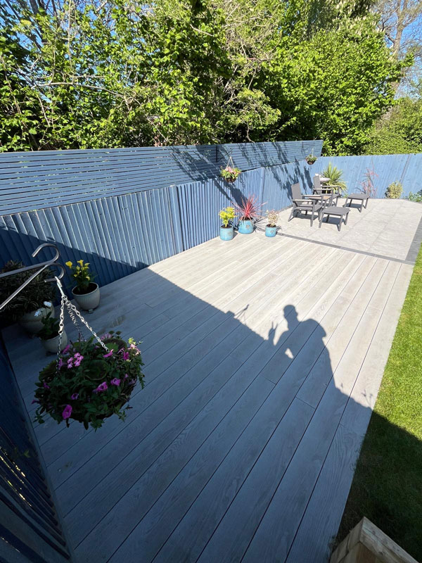 We purchase all our composite and Millboard decking from Cladco. They have a wide variety of colours to suit your needs. We offer various options when it comes to the framework, ranging from a simple timber structure which is secured into the ground with posts, to the frame being sat on concrete blocks, which are set on a solid sub-base. This can all depend on your budget and where the deck will be situated.